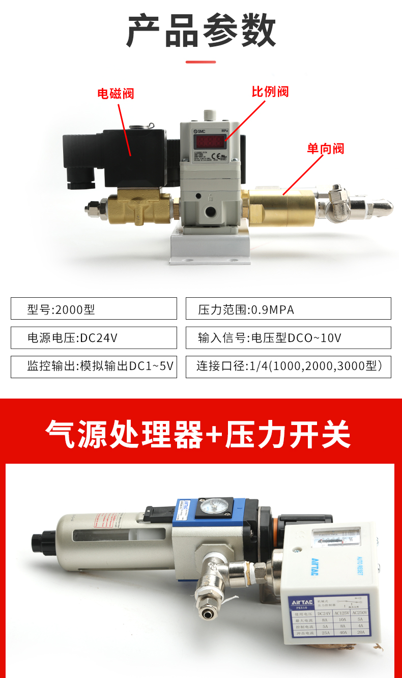 光纤激光比例阀套装电磁阀高压空气过滤器气动压力开关控制阀