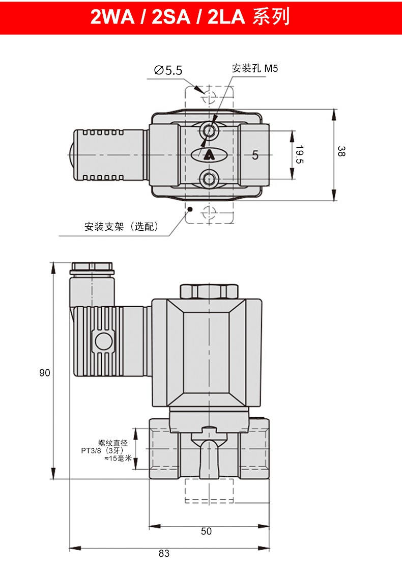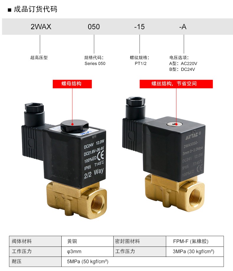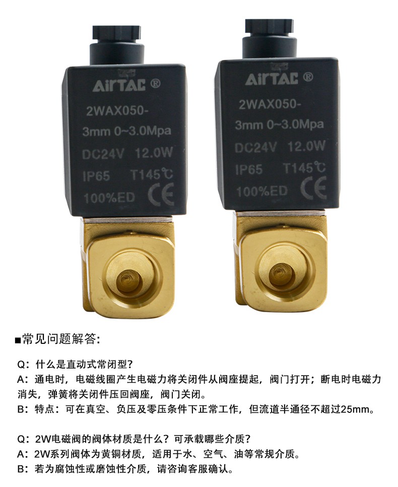 二位两通高压电磁阀DC24V常闭气动流体控制阀2WAH05010黄铜开关阀