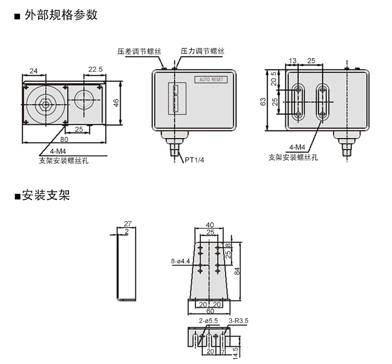 气动压力开关空压机械式气压检测K510PK506PK503气泵继电控制器
