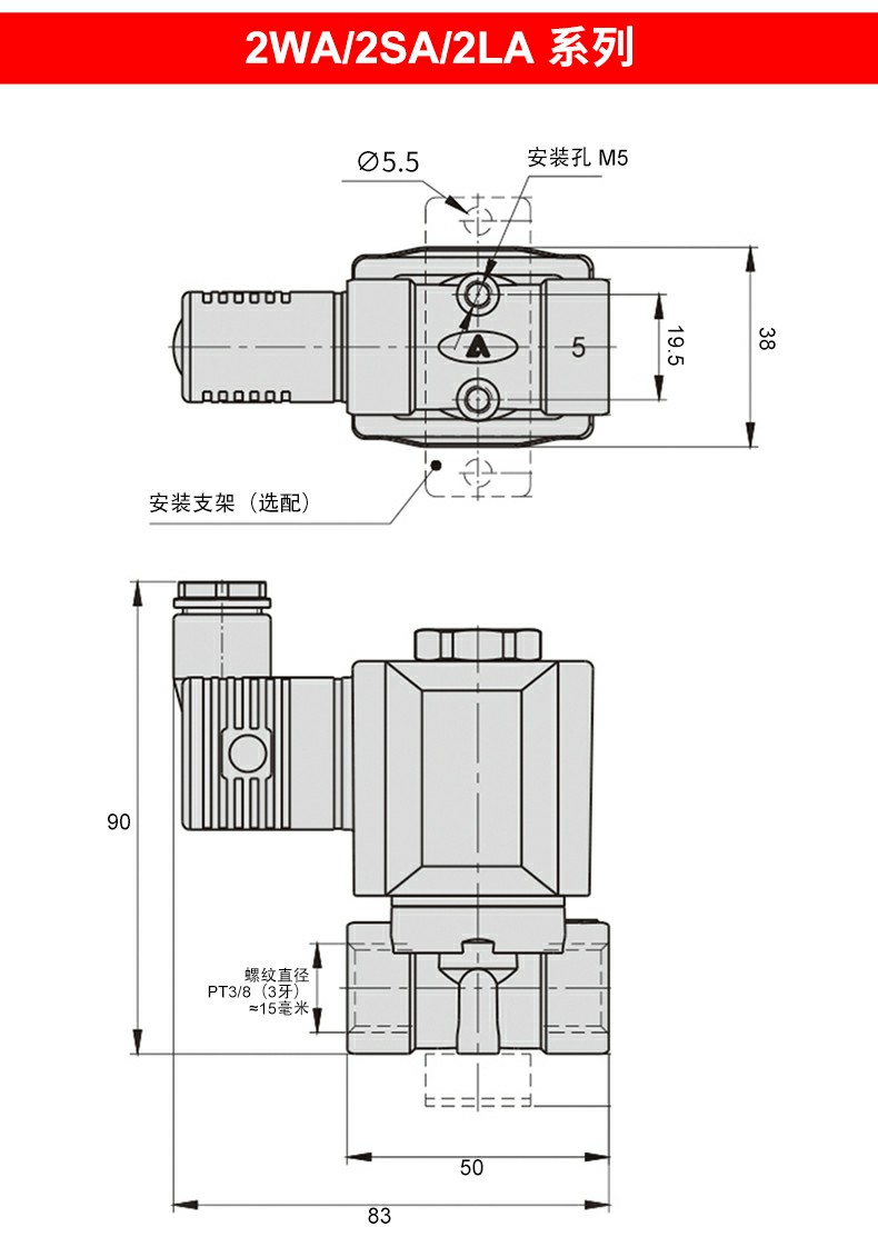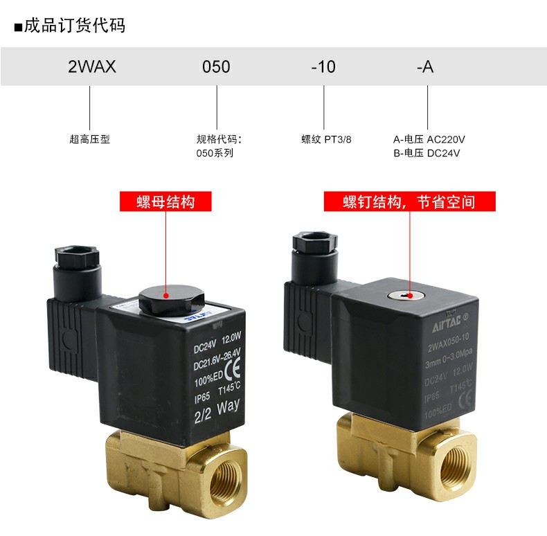 二位两通高压电磁阀DC24V常闭气动流体控制阀2WAH05010黄铜开关阀