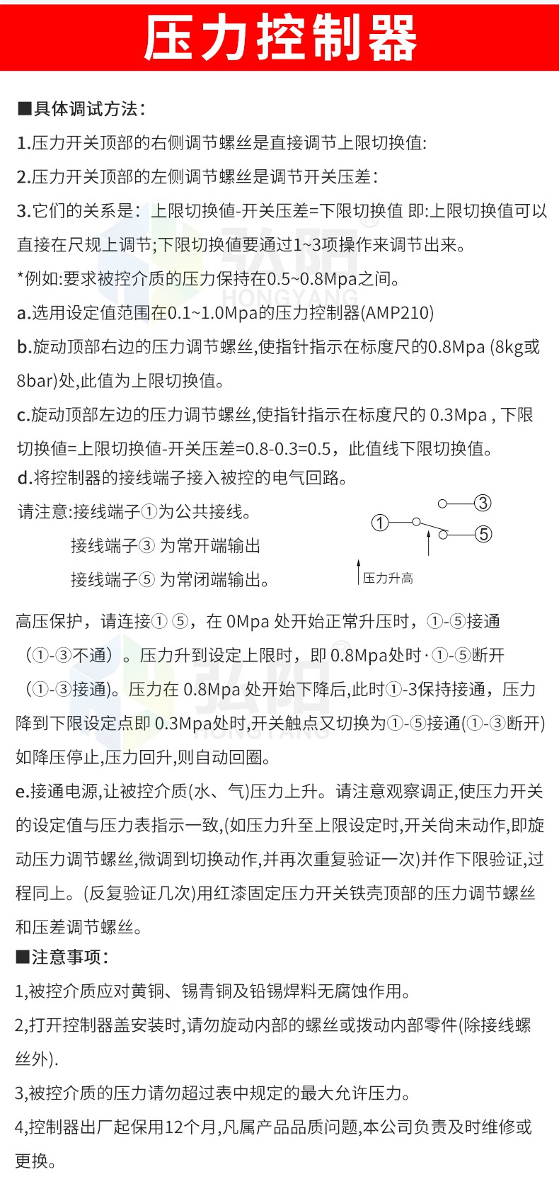 压力开关是一款机械式压力控制器,具有结构简单、性能可靠等特点