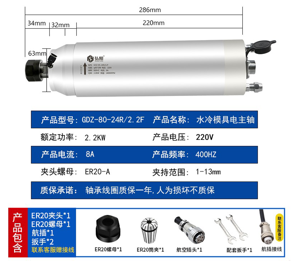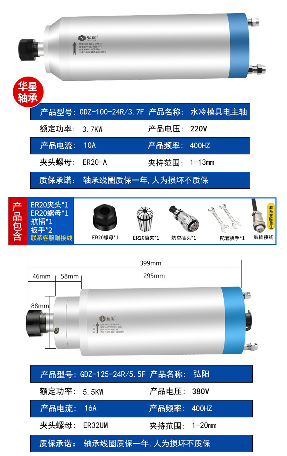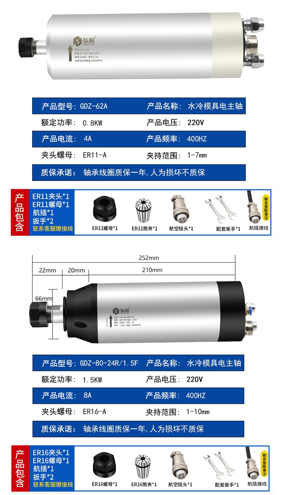 弘阳 带气封模具主轴系列 0.8kw-7.5kw