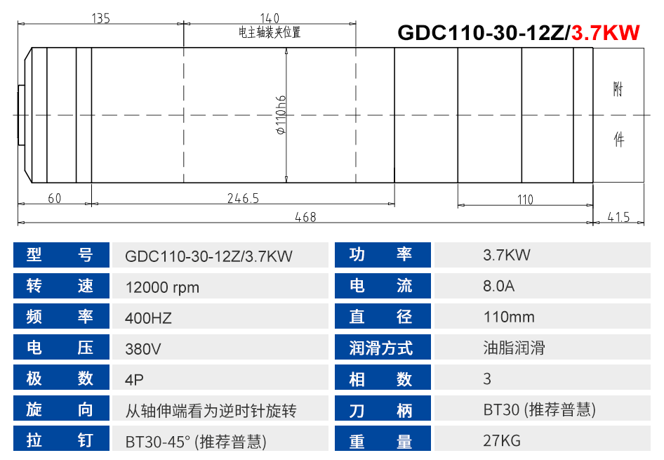 锯片类风冷主轴