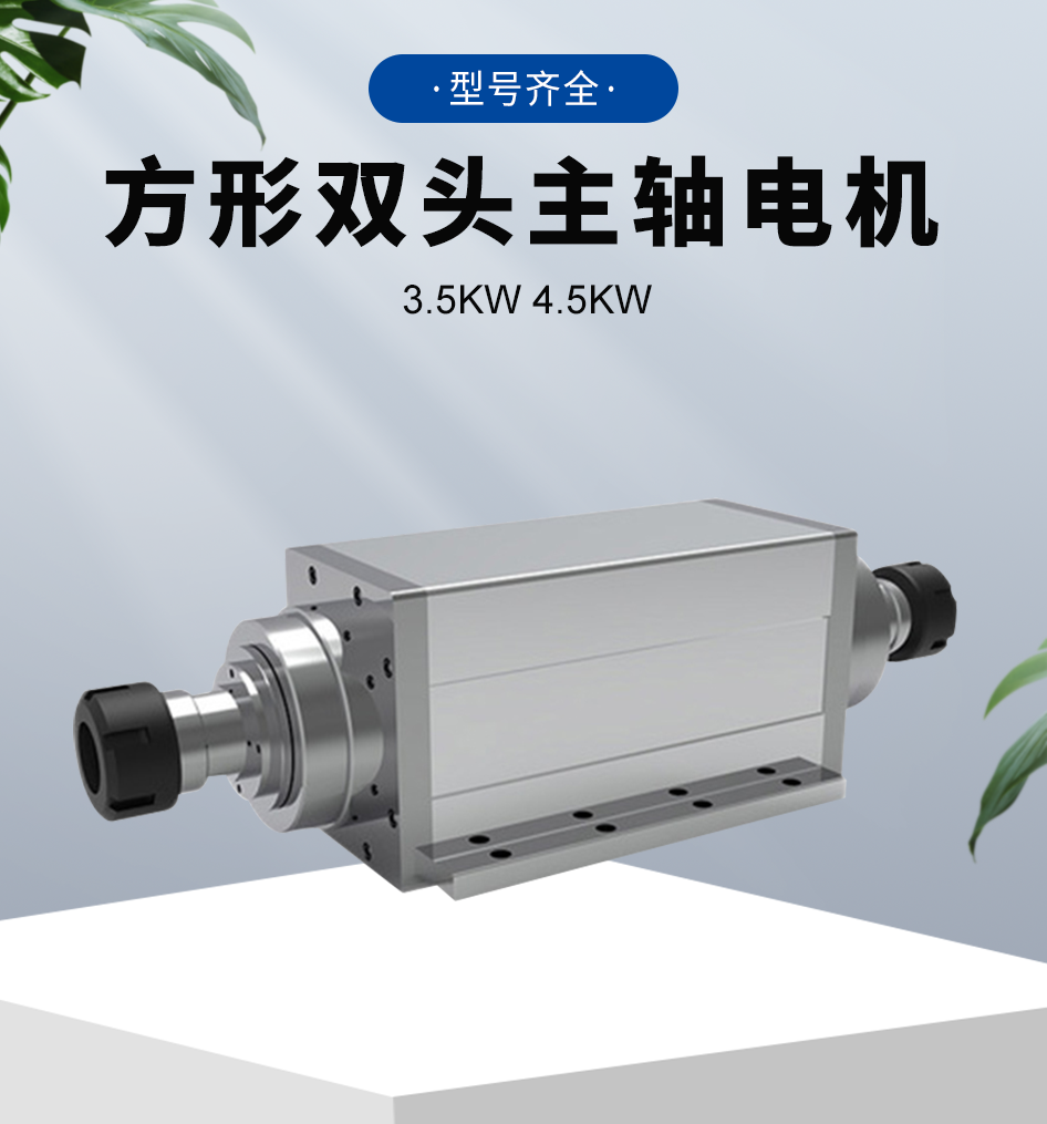 方形双头电主轴是一种特殊的电主轴设计,它拥有两个输出端(头),这样的设计使其在功能和应用场景上具有一定的独特性。