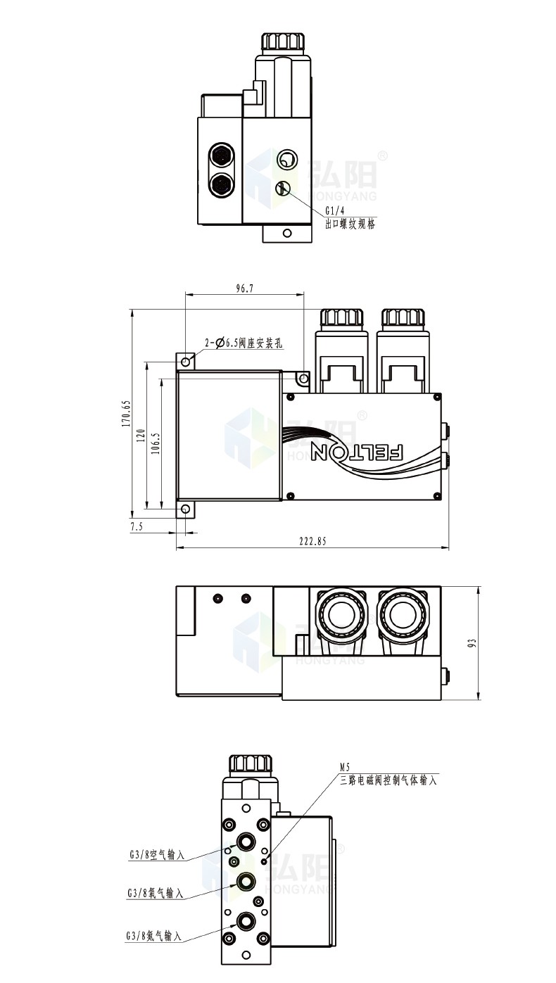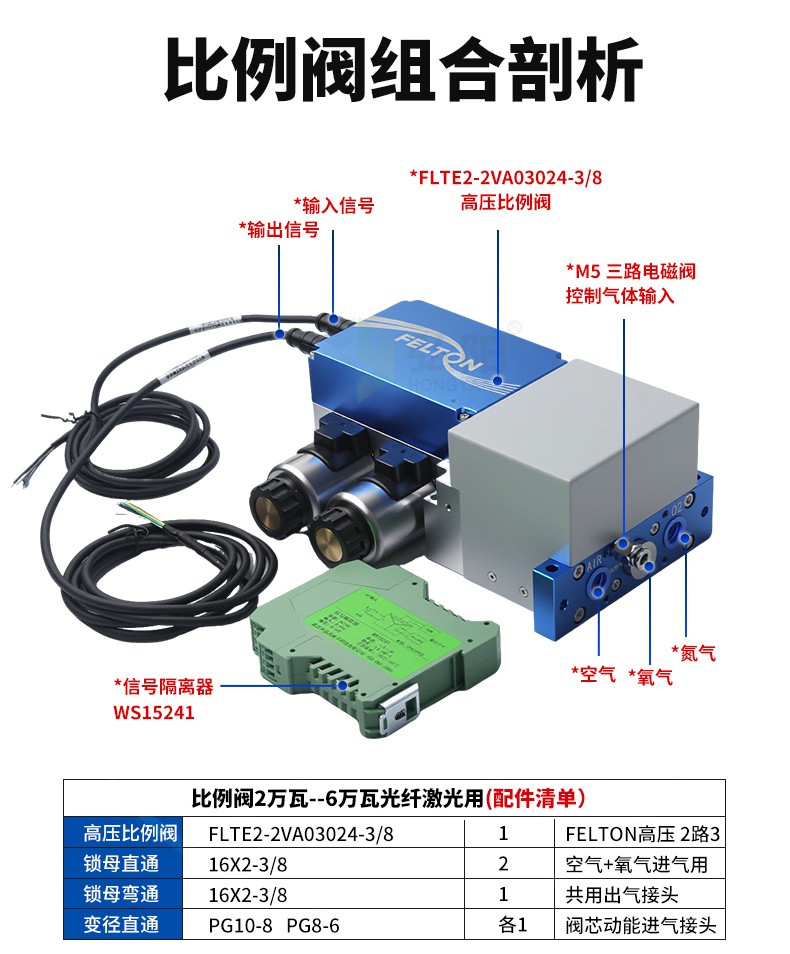 激光切割专用FLTE4高压比例阀三通道进气一体机型集成式控制气阀