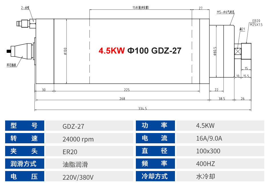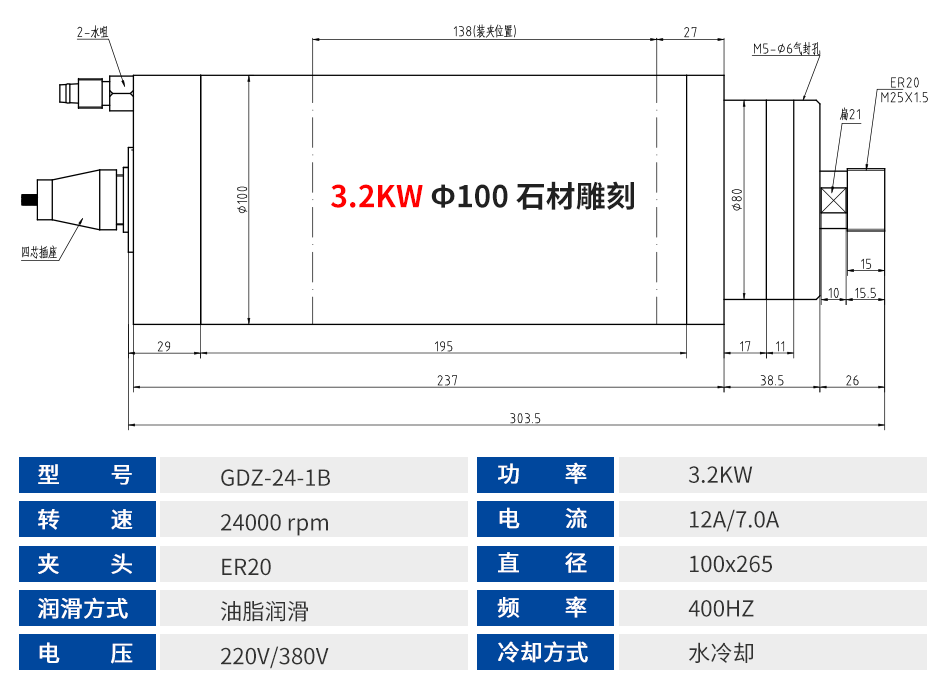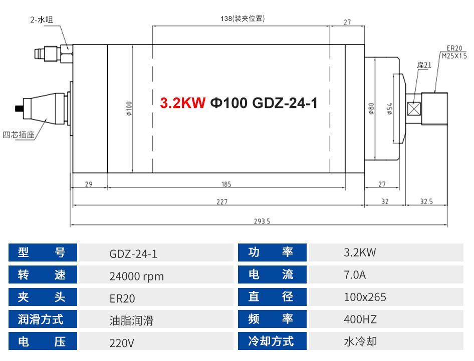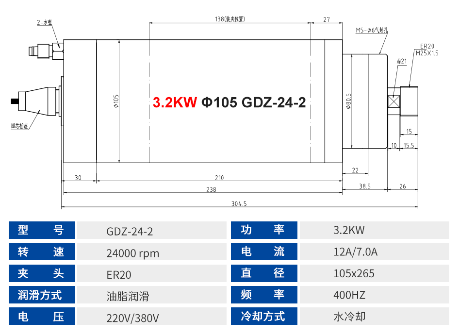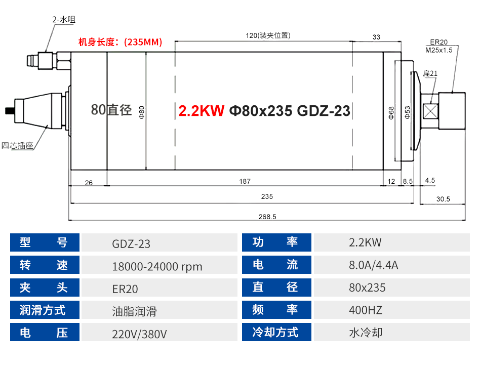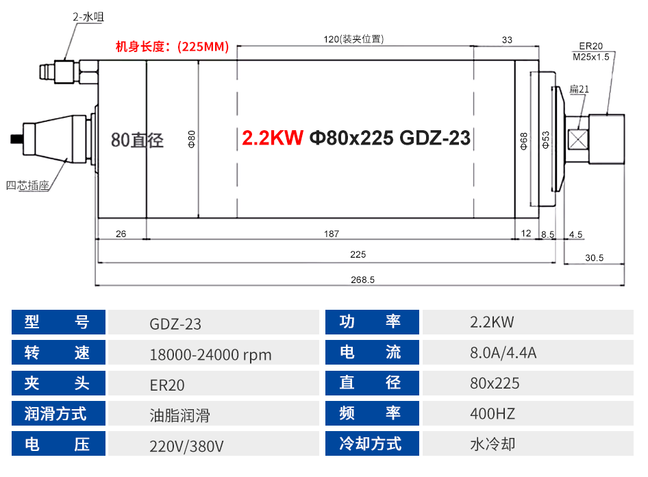 前程HQD 圆形水冷主轴系列 0.8KW-5.5KW