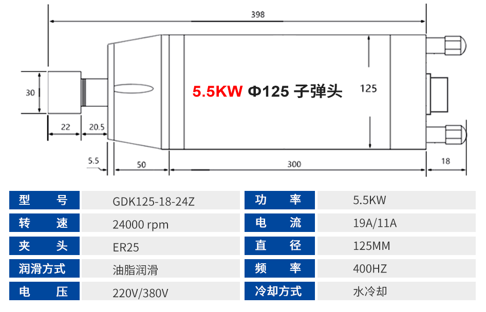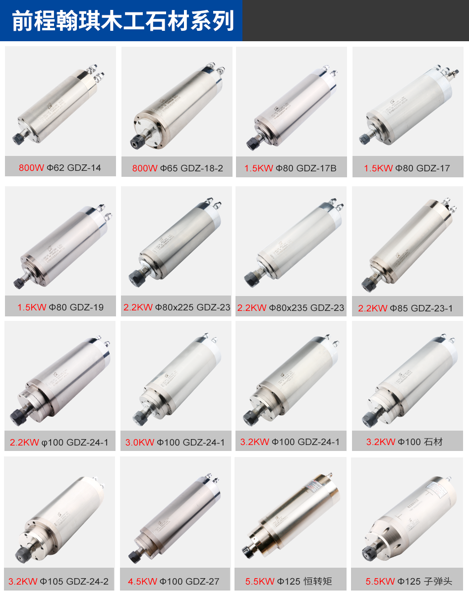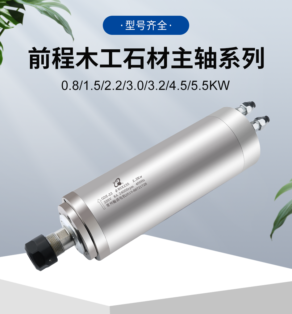 木工雕刻机配件电主轴 主轴电机 前程翰琪HQD 0.8/1.5/2.2/3.0/3.2/4.5/5.5KW圆形水冷主轴