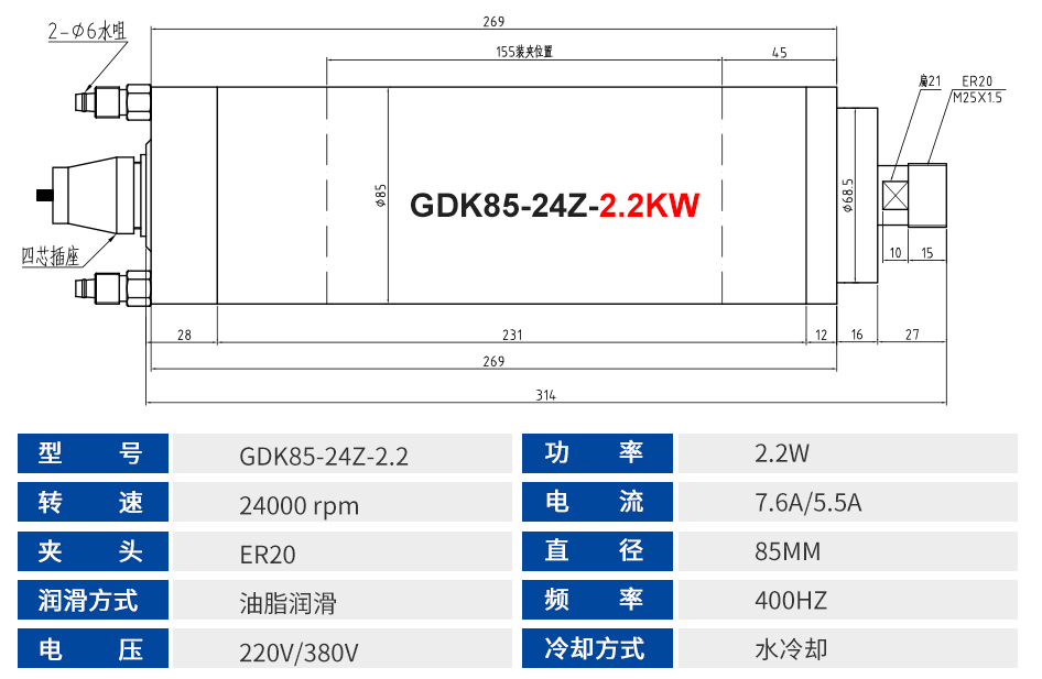 锯片类风冷主轴