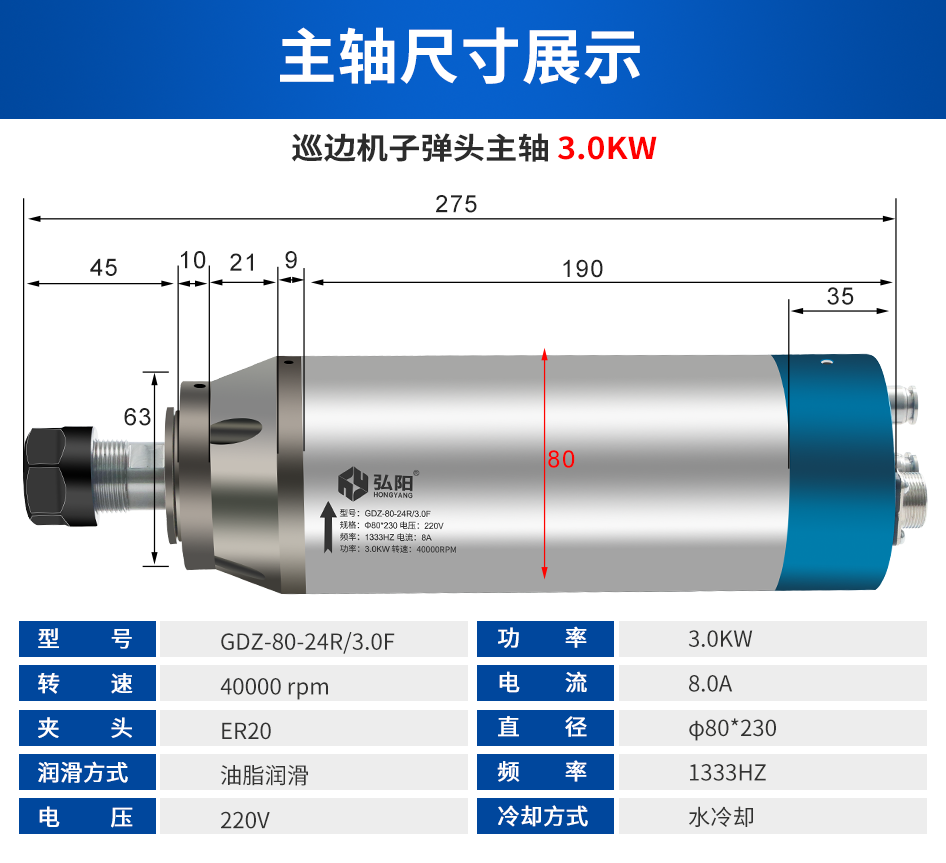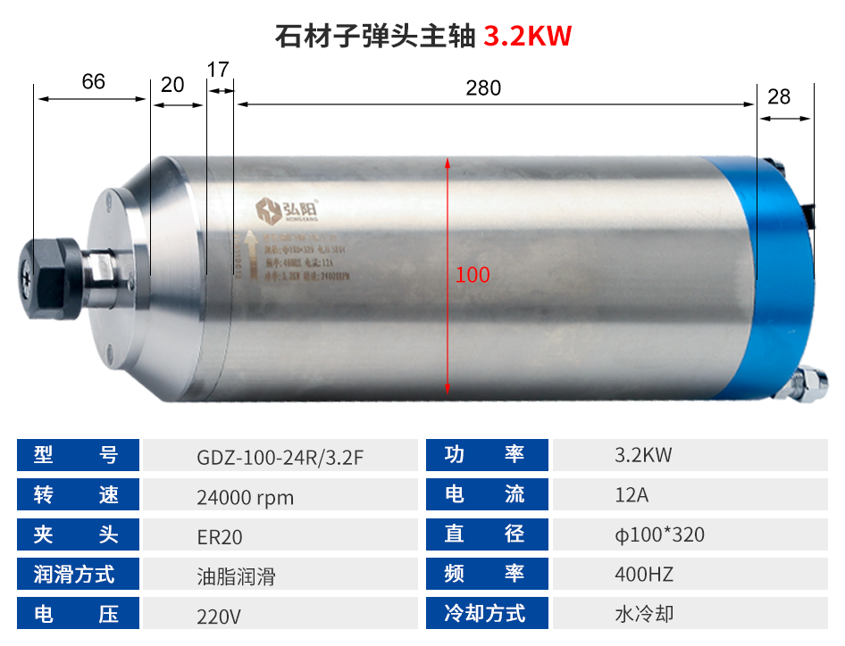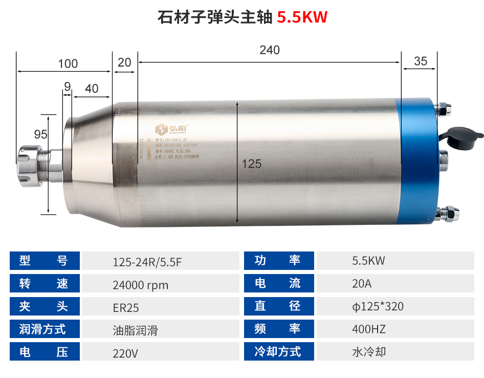 弘阳 石材子弹头主轴系列 3.0KW-7.5KW