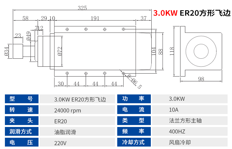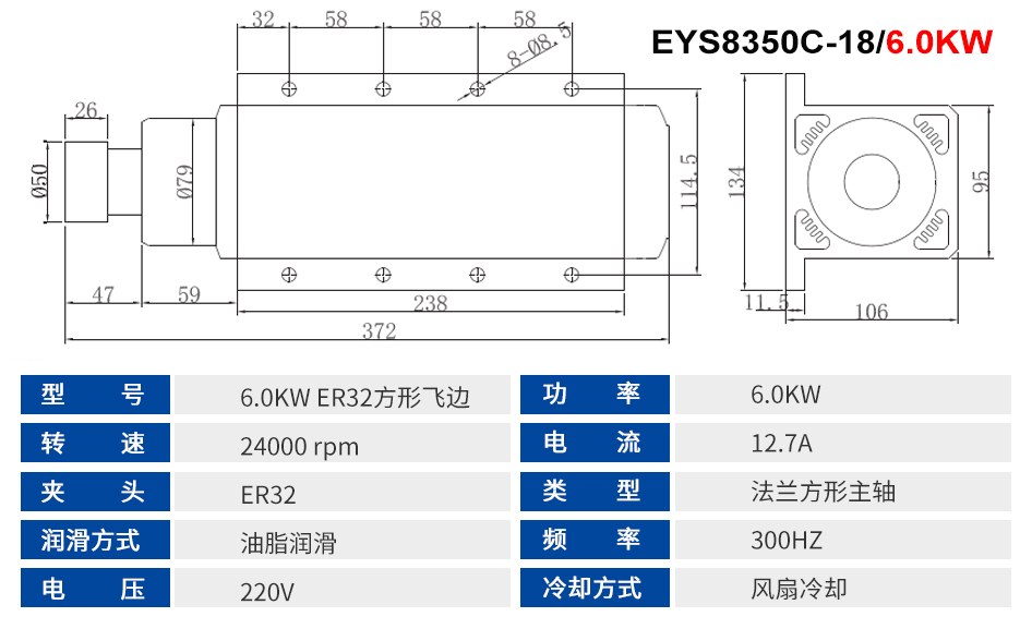华江 方形风冷主轴系列 1.5KW-6.0KW