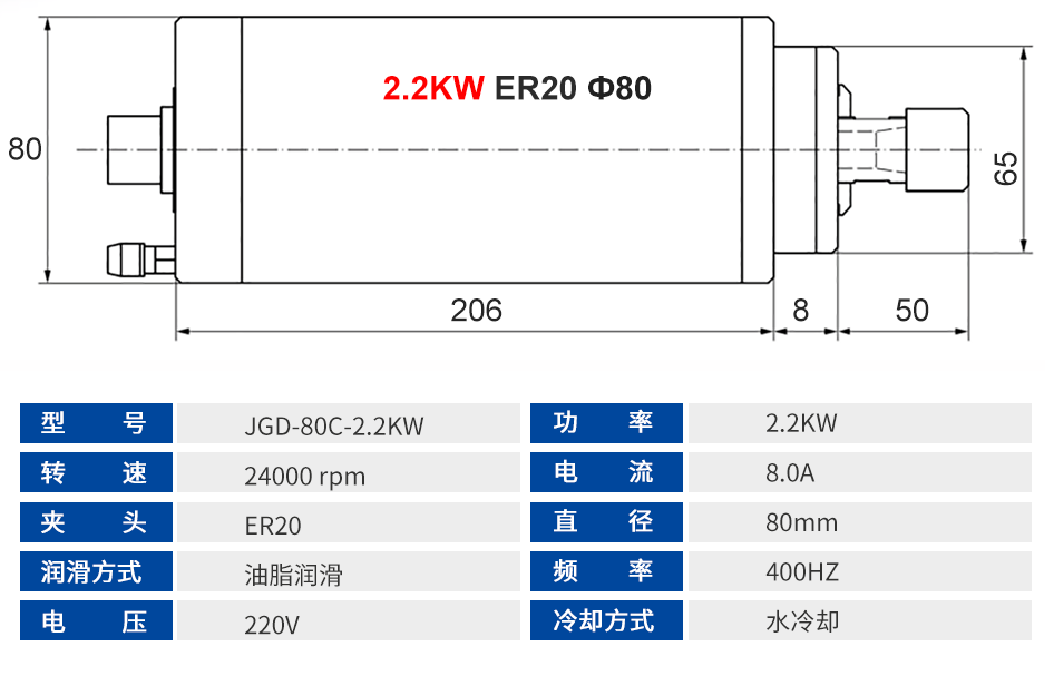 杰斯特 水冷主轴系列 0.8KW-5.5KW