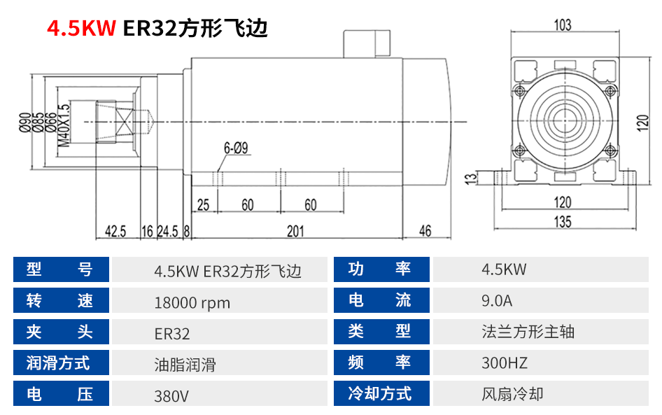 方形双头电主轴