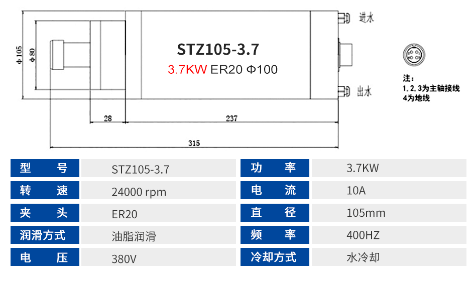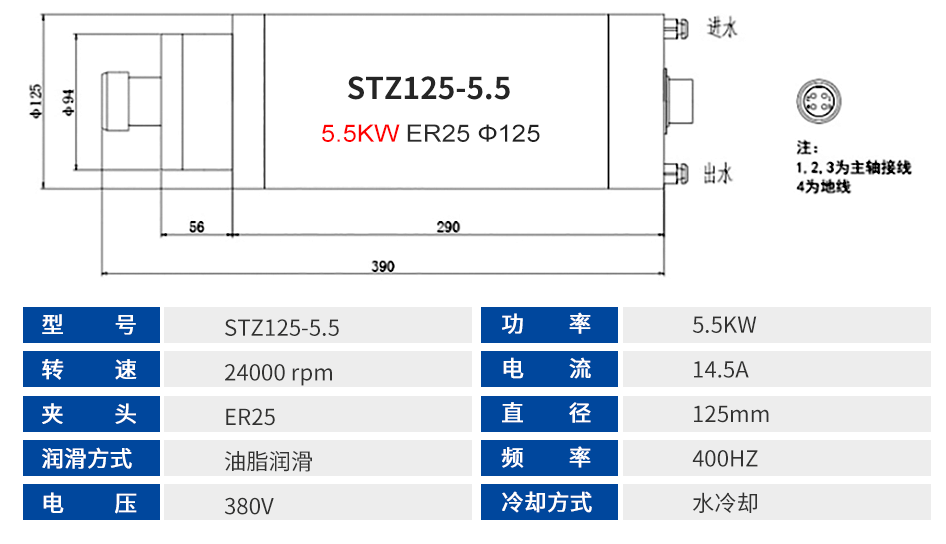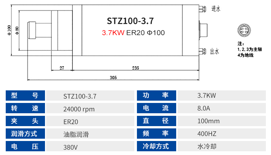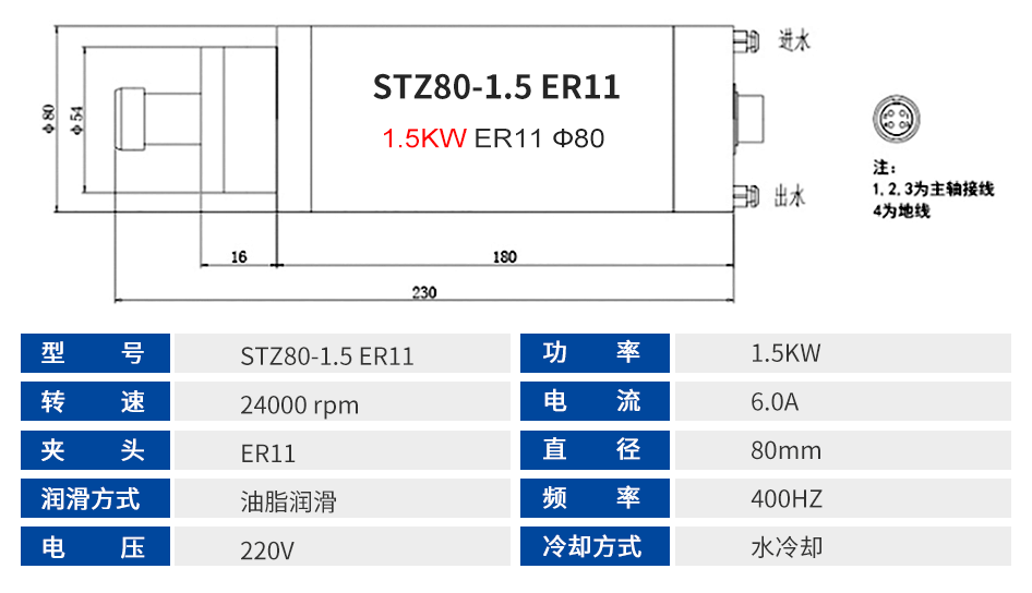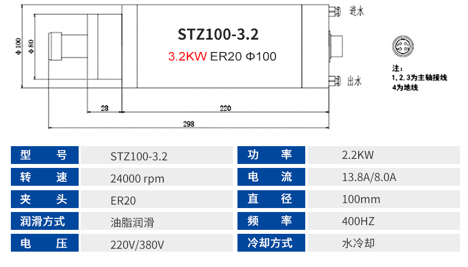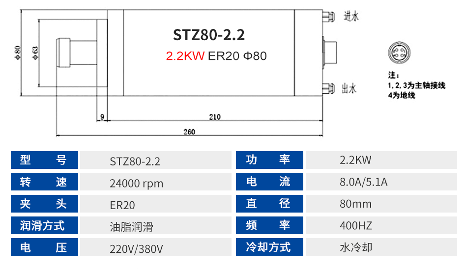 顺通 圆形水冷主轴系列 0.8KW-5.5KW