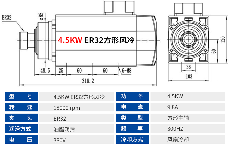 方形双头电主轴